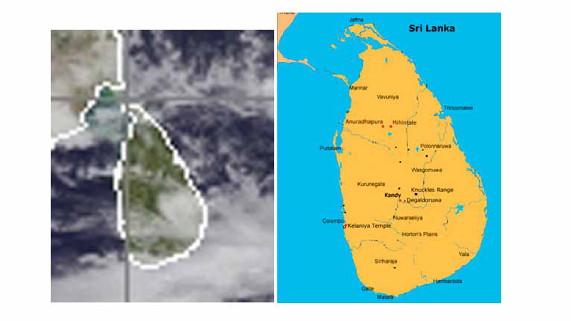 reading from an enlarged Sri Lanka map obtained from a Satellite Weather