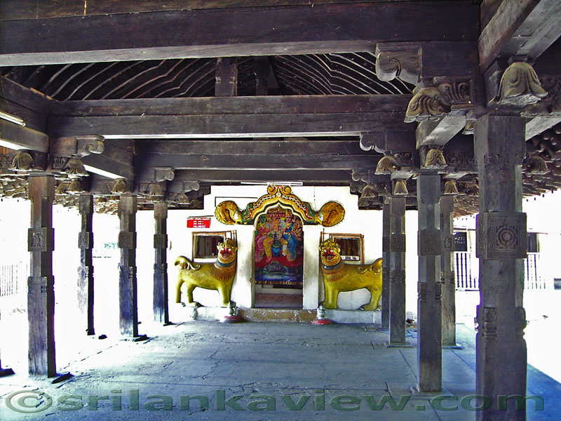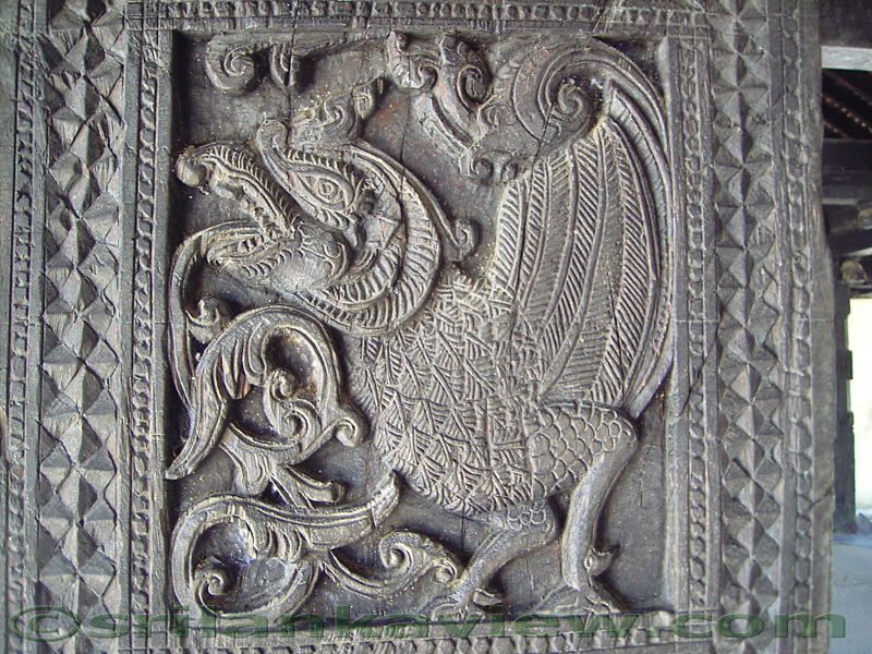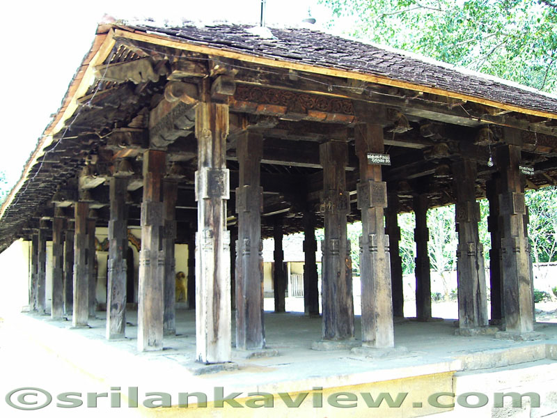 The Hall of the Devalaya is called Dik Ge or the Hevisi Mandapaya (Drummer's Pavilion) and has 32 Wooden Pillars. Each Pillar has 8 LiyaPath designs few feet above ground level. The section above that is 8 sided and the famous carvings appear on the 4 sides on top of this section.