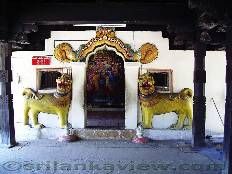 It is also believed that the Statue of God Kataragama made out of plaster on the Peacock vehicle had been erected on the cut out stem of the Kaduru Tree. The belief also is that the Henakanda Biso Bandara , Queen of King Vickramabahu III , after her death, had been confided to be the guardian God of the Temple by God Kataragama.
