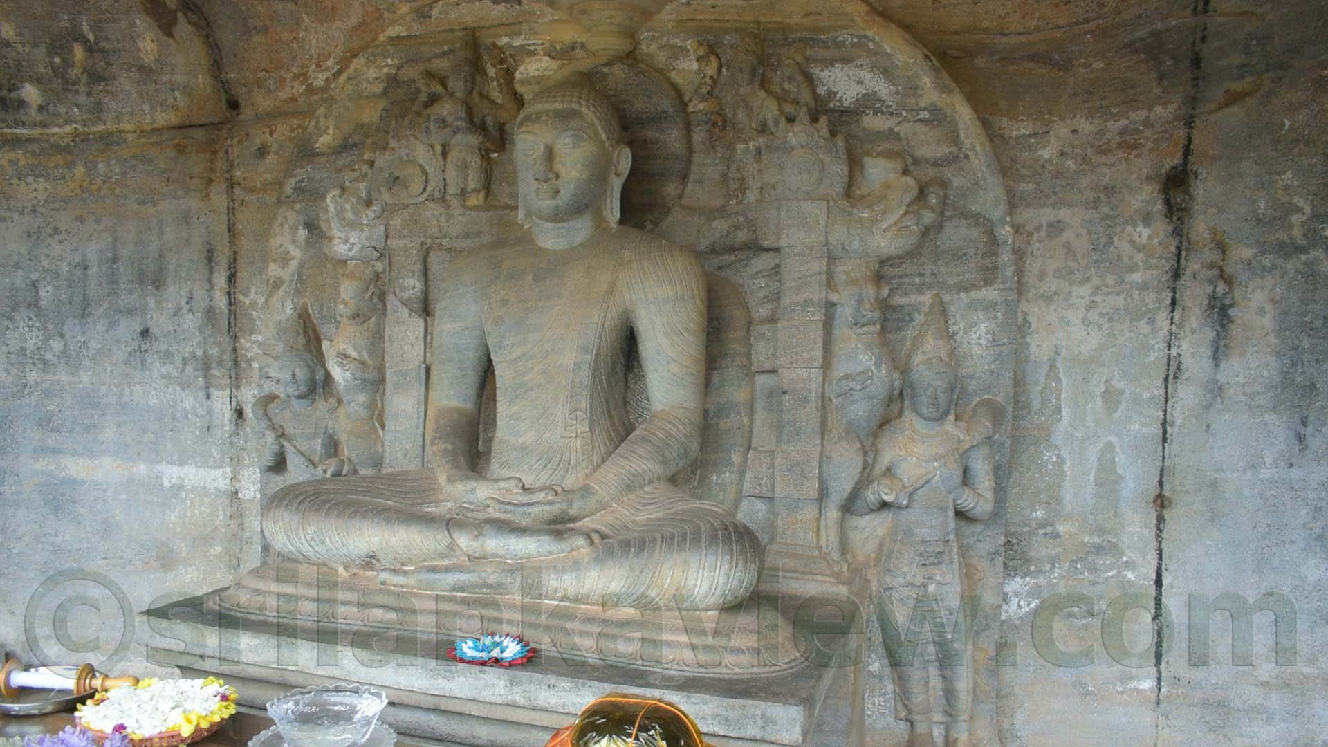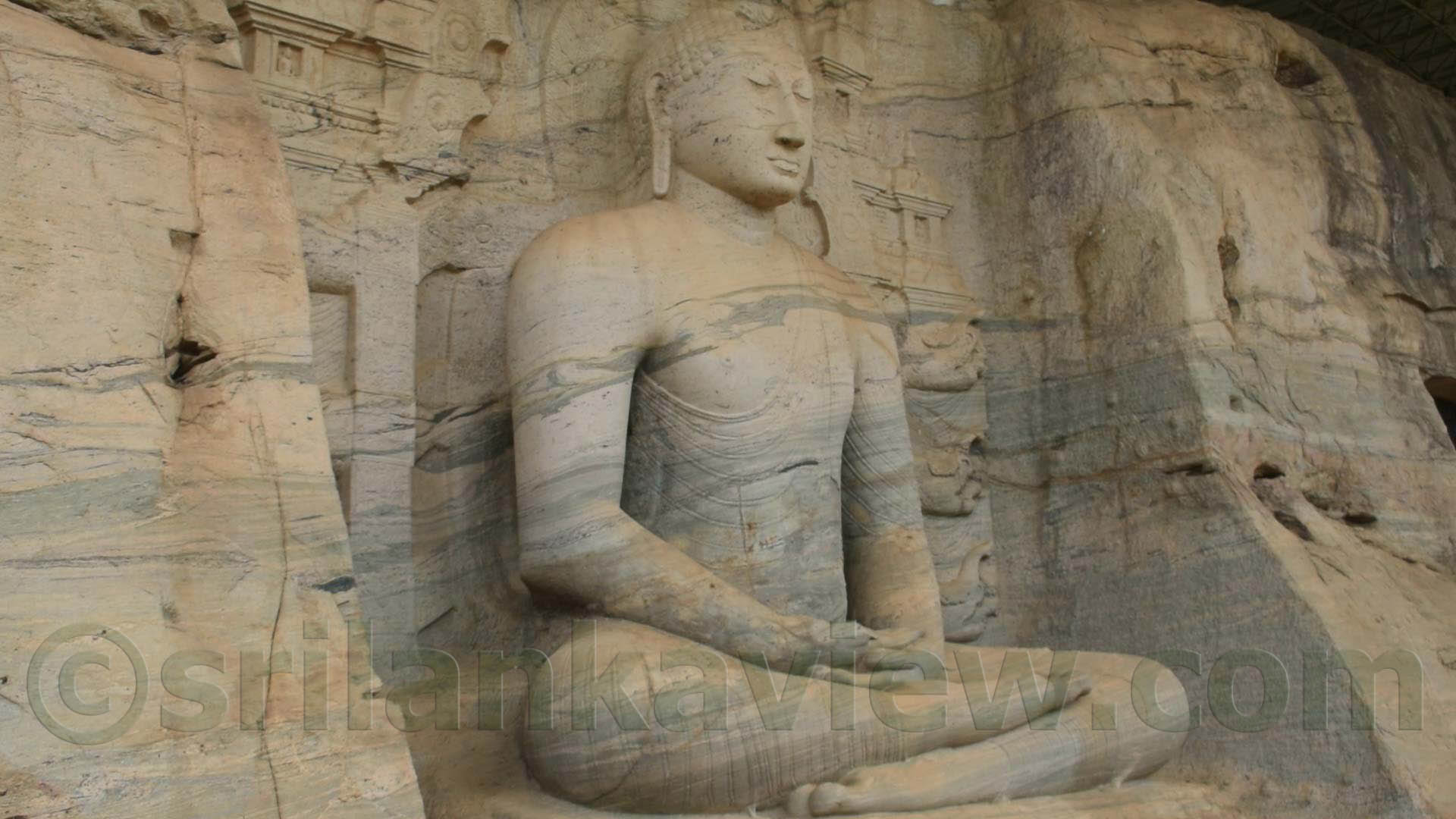 Seated Buddha Statue: Located adjacent to the standing statue, this sculpture portrays the Buddha in a meditative posture, known as the "Dhyana Mudra." The Dhyana Mudra represents the state of deep contemplation and inner tranquility. It symbolizes the union of wisdom and concentration, leading to spiritual realization and enlightenment.The height of this Buddha Statue is about 4.6 meters (15 feet 2 inch). This seated Buddha statue is considered to be the most acclaimed artistic sculpture in Sri Lanka, reflecting its exceptional craftsmanship and cultural significance.