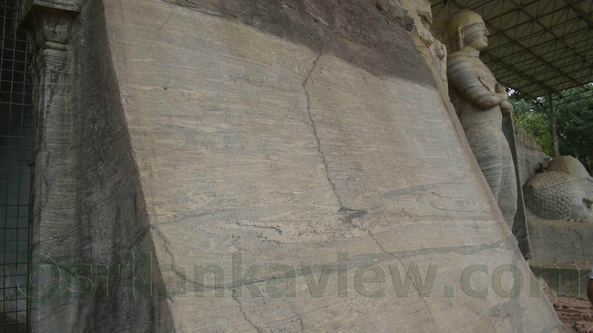 The Gal Vihara is famous for its four main sculptures, all carved out of a single granite rock face. The details of Gal Vihara sculptures with dimensions can be narrated as