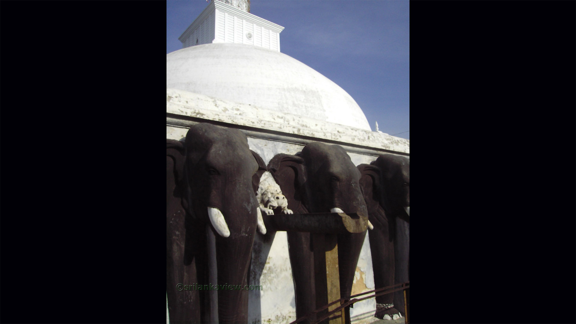 Ruwanweliseya Vahalkada has many fine sculptured Elephant and Makara figures