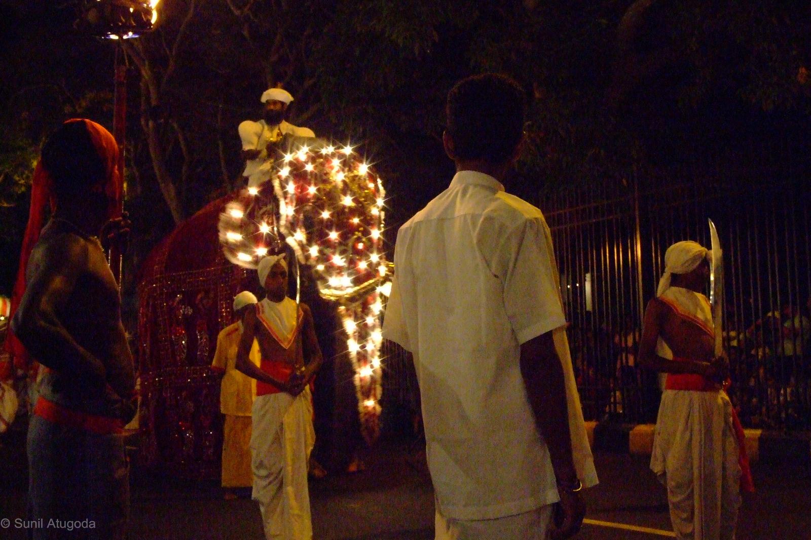 Kandy Esala Perahera is held in either July or August of every year to pay homage to the Sacres Tooth Relic if Buddha. Esala is the Sinhala name for the month of August and perahera means a procession.Mahavamsa states that the processions (perahera) had been in Sri Lanka from the times of King Vijaya. There had been processions in the events of bringing the Jaya Sri Maha Bodhi sapling to Sri Lanka as well as Mihidu Perahera at Anuradhapura from ancient times. It was during King Dharmasoka's time in India that Buddhist processions had occurred in grandeur scale. In Sri Lanka, Dalada perahera had first been held during the 4th century AD in the reign of King Megawanna. The present Dalada perahera with the participation of the four devala is called as the Kandy Esala Perahera. The Perahera starts with "Kap sitaweema" festival , then Kumbal Perahera and finally ends up with Randoli Perahera which takes place for about ten days in night time. Festival ends up with a day perahera the day after the final Randoli perahera. The most significant event of the perahera is the Maligawa Tusker carrying the Perahera Relic casket or the Perahera Karanduwa with relics which is venerated by the assembled crowd.
