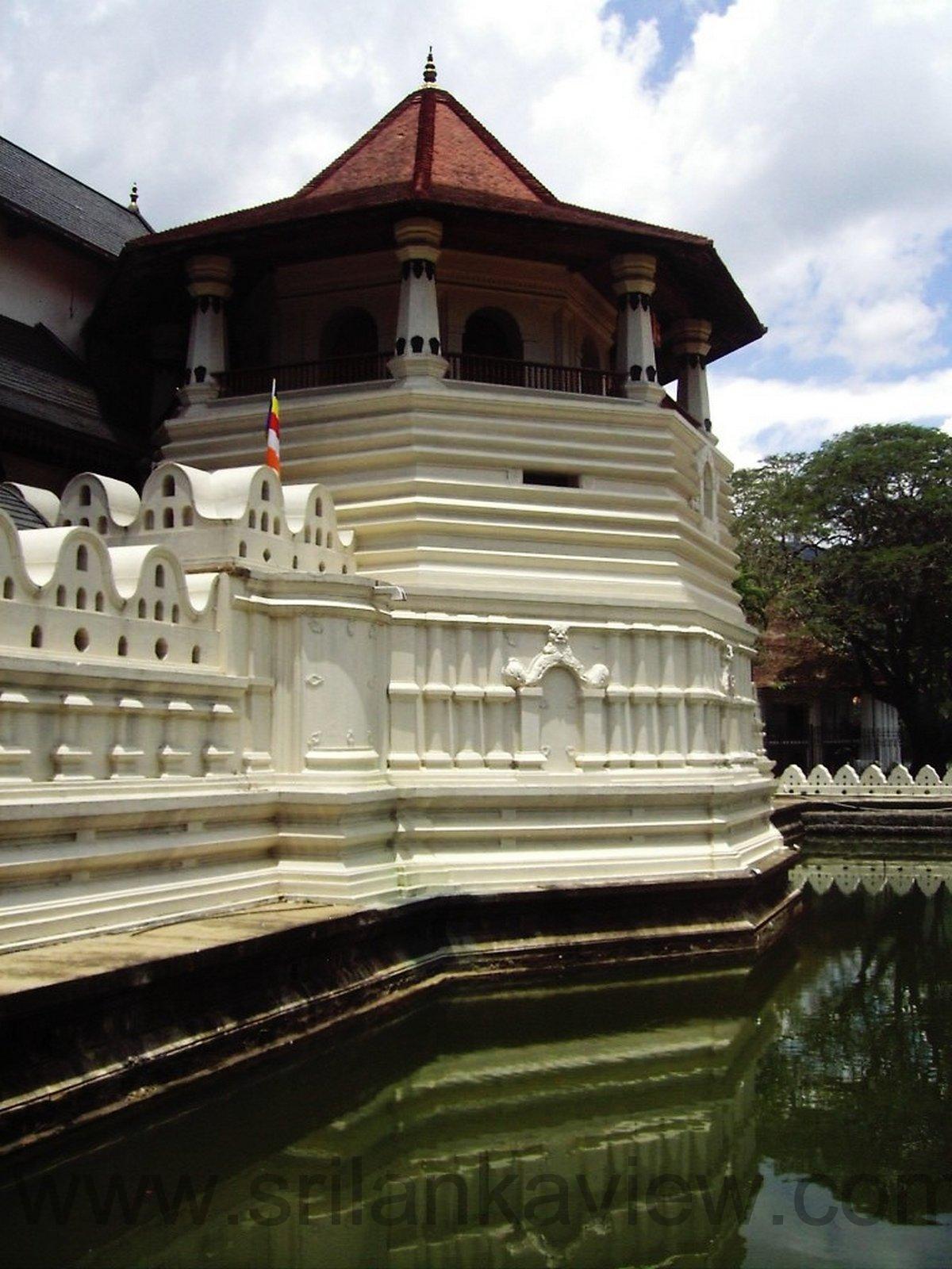Relics of the Lord Buddha is venerated by all Buddhists throughout the world and the relic at the Dalada Maligawa is the left pointed conical tooth of the Lord Buddha which is one of the remains of the cremated body of the Lord Buddha after the Parinirvana. It is said to be removed by the Arahanth Kema, who is a pupil of the great Arahanth Sariputta and given to King Brahmadatta of Kalinga, India. For centuries it was venerated and homage was paid by the Buddhists of Kalinga. During the time of King Sirimeghavanna (301 - 328 AD ) of Anuradhapura, the Tooth Relic was brought to Sri Lanka by Prince Dantha (son of the King of Udeni ) and Princess Hemamali ( daughter of King Guhasiva ). During a war waged to obtain the possession of the Relic tooth by the nephews of King Pandu against King Guhasiva, this was brought to Sri Lanka by Hemamali and Danta in the guise of Brahmins and the Tooth Relic was hidden and concealed in Princess Hemamali's hair. The Lord Buddha Tooth relic which is presently at the Dalada Maligawa was brought to Kandy during the rein of king Vimaladharmasuriy I and he made a two storied Palace to place the Tooth Relic. During the first few centuries , it had been placed at Anuradhapura, Polonnaruwa, Beligala Rock, Dambadeniya, Yapahuwa, Kurunegala and Kotte kingdoms. Due to Portuguese invasion it was taken away by Buddhist priests to a mountanous region of Kandy and once Kandy was under the rule of the king, it was brought back again. Later King Vimaladharmasuriy II ( 1687-1707 AD) had built a three storied Tooth Relic Palace. King Parakrama Narendrasinghe ( 1707-1739 AD ) has also build a two storied temple for the Tooth Relic. The Last King of Sri Lanka, Sri Wickrama Rajasinghe made the Octagonal Building called “ Pattirippuwa” and the moat in front of the Palace.