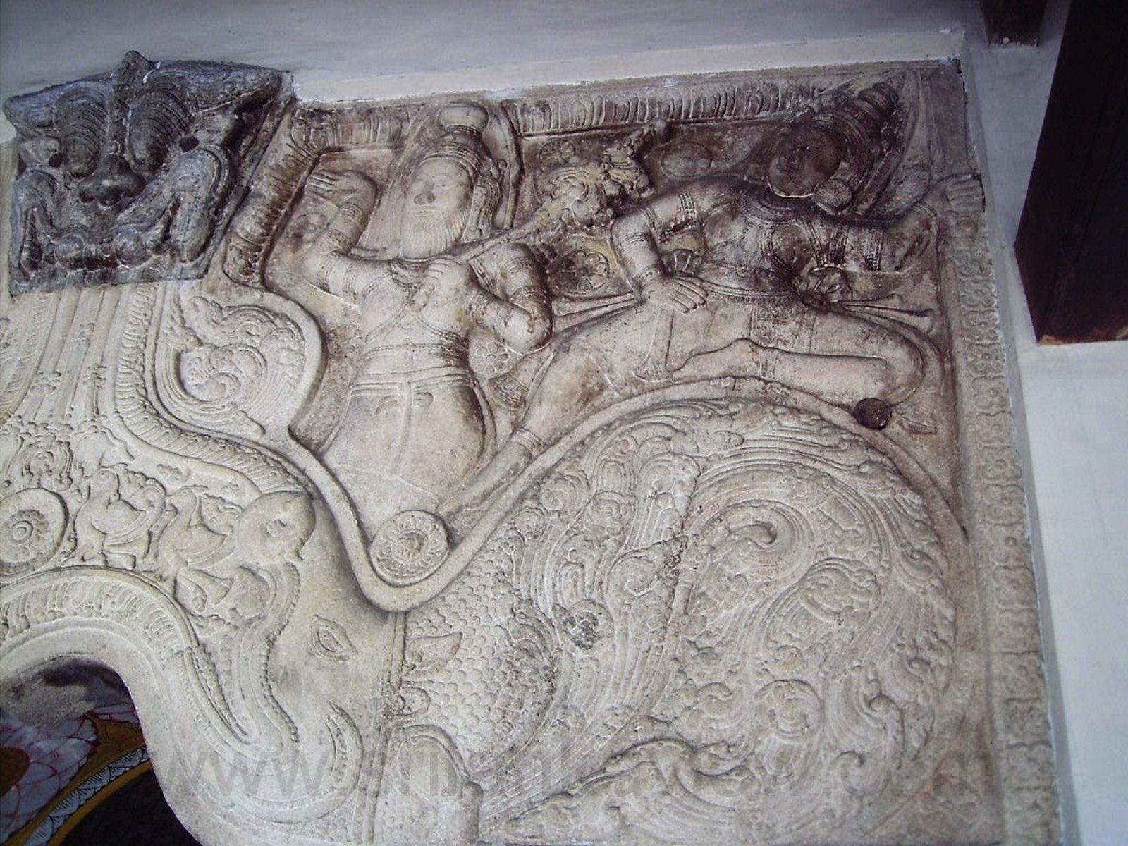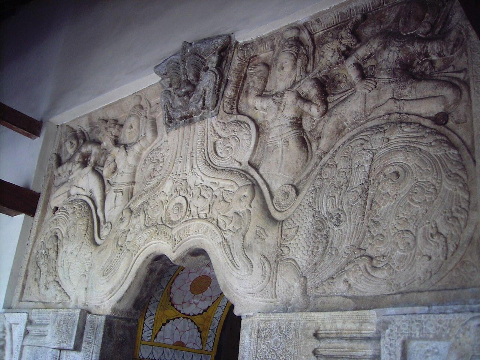 Stone doorway depicts many Kandyan Art designs on sculptured stone